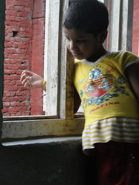On rainy Saturdays, a lot of the kids pour into one end of the dining hall and watch bad Indian TV on a station I have heard is owned by Fox. I think they have some movies and a DVD player too, but they don't have the basic patch cable to use it. I usually try to bring something with me, like paper and crayons, but often it is the things I have with me all the time that they are most interested in, like sunglasses, an umbrella, or, of course, my camera. They love taking pictures, and they love having their pictures taken, but there are always a few kids who snatch it away from the less powerful ones when I am not looking, or who weasel their way into four out of every five pictures taken.